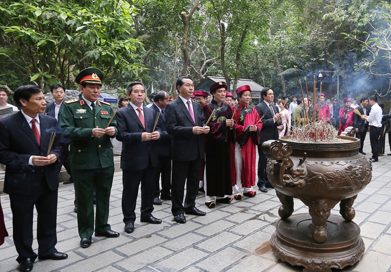 Nghi thức dâng hương thành kính tại Giỗ Tổ Hùng Vương – lễ hội lớn nhất trong các lễ hội ở Việt Nam.