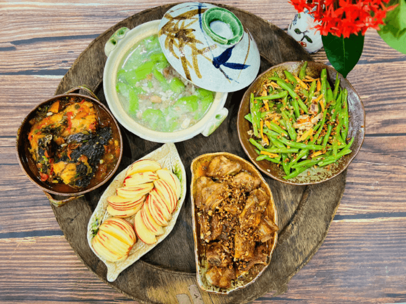 Trong mỗi thực đơn, bạn cần đảm bảo sự cân bằng giữa bốn nhóm: tinh bột, chất đạm, chất béo, vitamin và khoáng chất. Một bữa cơm “chuẩn” thường bao gồm: một món mặn (giàu đạm), một món canh (bù nước và khoáng), một món xào hoặc rau luộc (chất xơ) và một món nhẹ ăn kèm (dưa chua, cà pháo để kích thích tiêu hóa).