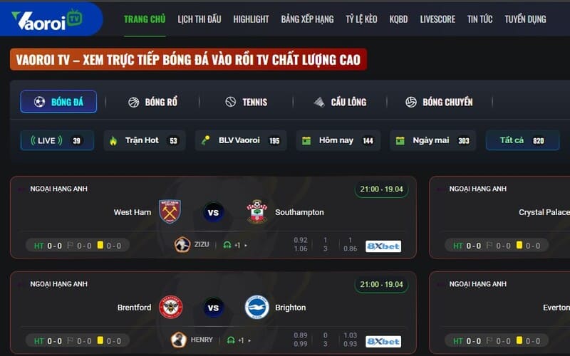 Ngay từ lần đầu tiên truy cập Vaoroi, bạn sẽ cảm thấy ấn tượng bởi giao diện trực quan, thân thiện và dễ sử dụng. Mọi thứ được sắp xếp một cách khoa học, giúp bạn dễ dàng tìm kiếm và lựa chọn trận đấu mình muốn xem chỉ với vài cú click chuột.